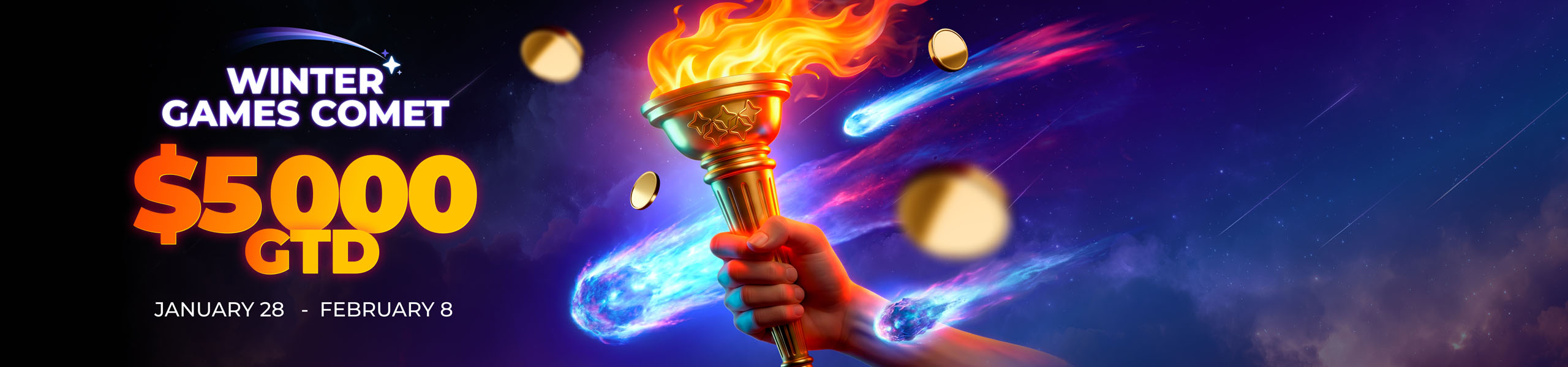 The Winter Poker Games are officially open — join the multi-day tournament Winter Games Comet! Play Day 1 at Bronze, Silver, or Gold levels, build your stack, and qualify for the Final Day with a $5 000 guarantee!