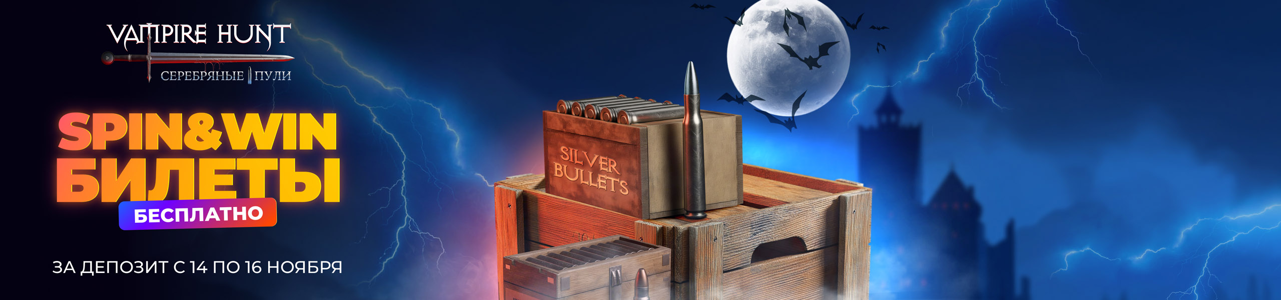 Сделайте депозит с 14 по 16 ноября и получите “Серебряные пули” — до $35 билетами на Spin&Win.
