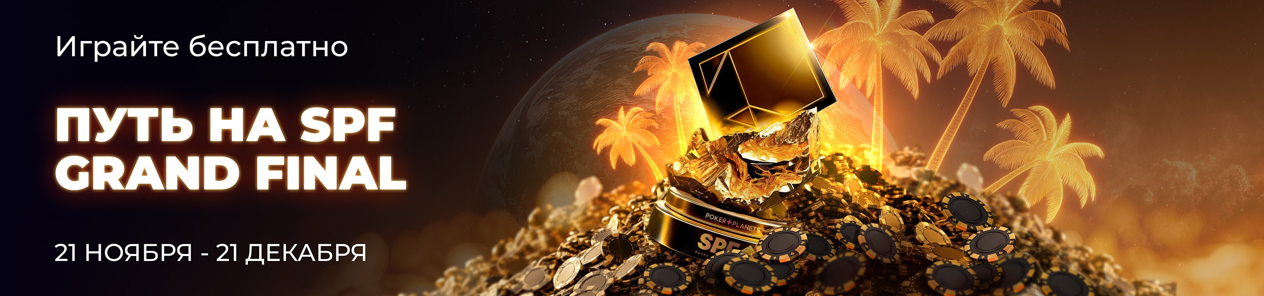 Вы можете попасть на Main Event SPF Grand Final можно абсолютно бесплатно! Участвуйте в онлайн сателлитах на PokerPlanets c 21 ноября по 21 декабря и забирайте свой билет в главное событие.