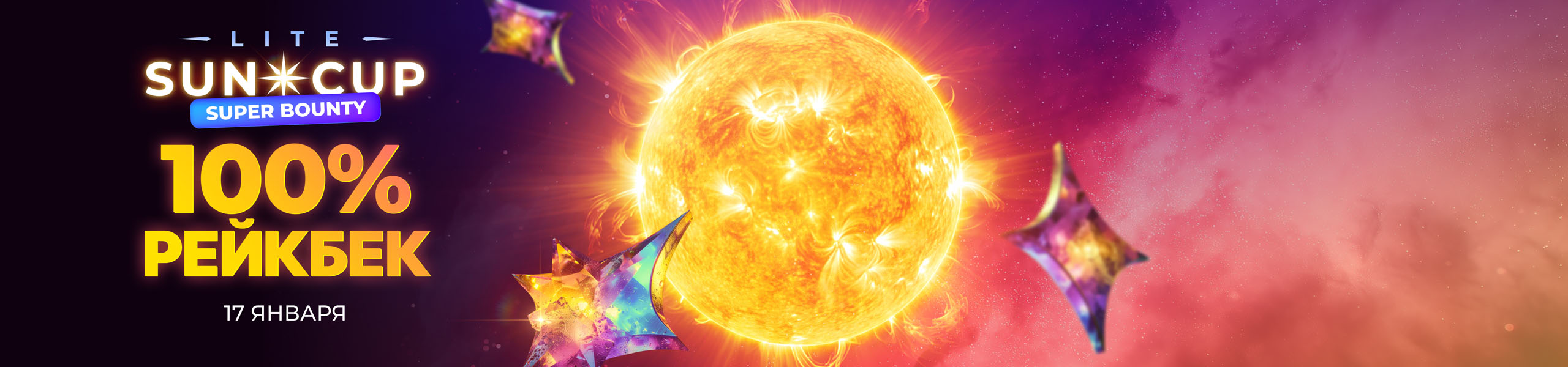 17 января на PokerPlanets пройдет Sun Lite Cup — лайт-версия турнира Sun Cup для тех, кто хочет забрать 100% рейкбек с меньшими затратами! Всё та же динамика, крупные баунти и бонус, но только дешевле.